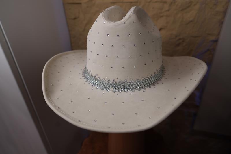 White hat with silver dots