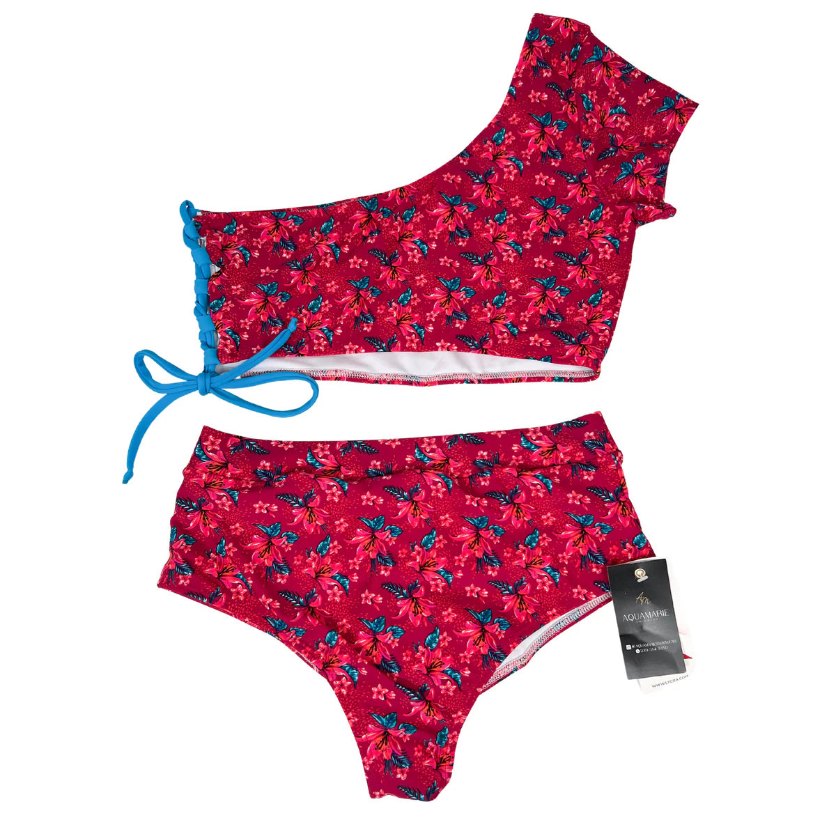 Sumérgete en la ardiente pasión del verano con nuestro impresionante traje de baño de dos piezas en un vibrante rojo caldera. Este traje de baño es una celebración de la audacia y el encanto, meticulosamente diseñado para realzar su colección de ropa de playa con una explosión de encanto cautivador.